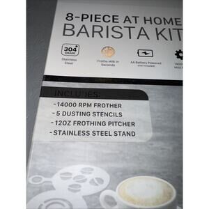 At Home Barista Kit Frother Dusting Stencils 12oz Frothing Pitcher & Stand