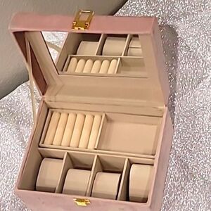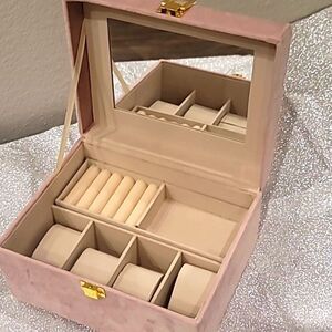 At Home Pink Velvet Jewelry/Watch Organization Box w/Handle