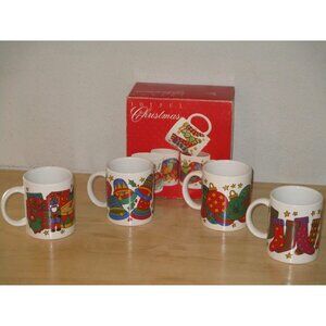 Vintage, Lot of 4 Different Joyful Christmas Mugs
