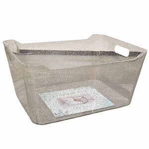 Add a touch of sparkle to your bathroom with this transparent glitter storage bin. Perfect for organizing toiletries and bath essentials.