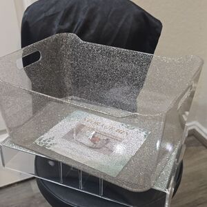 At Home Transparent Decorative Glitter Storage Bin w/Handles