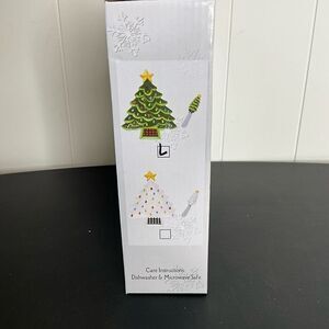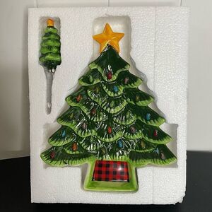 At Home by Mirabeau Farmhouse Christmas Tree Plate with Spreader Green Black New