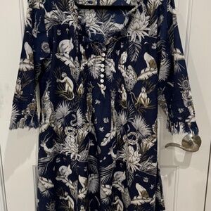At Last Annabel Cotton Tunic Dress In Navy Tropical Size US 12