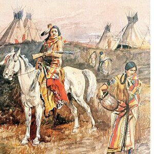 At The Spring Native Americans Teepees 1978 Old West Print Russell LGAD99