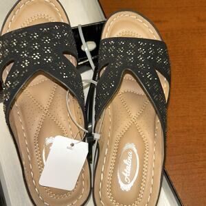 Atalina DW9991 Mid Wedge Embellished Slip On Sandals 5.5
