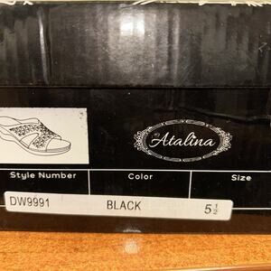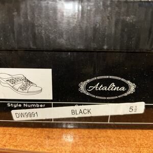 The Atalina DW9991 Mid Wedge Embellished Slip On Sandals in size 5.5 are stylish and comfortable sandals perfect for casual occasions. With a versatile black color and rhinestone accents, these sandals feature a medium wedge heel for added flair. Made of faux leather with cushioned insoles, they are designed for all-day wear and are suitable for summer, fall, and spring seasons. The slip-on style and wedge heel make them easy to put on and wear, making them a practical and fashionable choice for women.