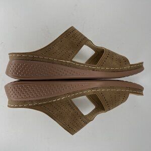 Atalina SuedeLook Comfort Feel Sandals Womens Size 9.5 EU 41 Tan Wedge Heels