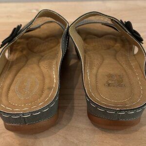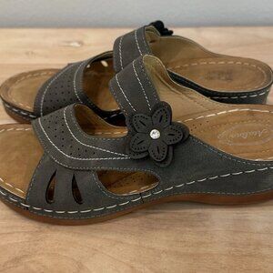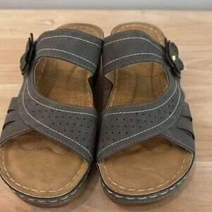 Atalina Women's 9 Comfort Gray Slip on Wedge Summer Artisian Open Toe Sandals