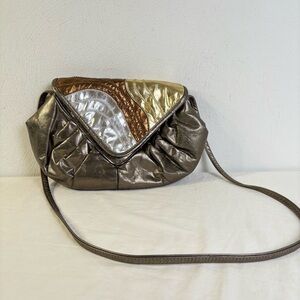 Atalla Vintage 80s 40s Art Deco Geometric Textural Metallic Genuine Leather Bag