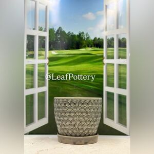 Dimensions: 5”H x 5.5”W, Opening 5”, weight 1lbs 6.1oz, Drainage hole, saucer attached to the planter, Materials: Ceramic, Color: Gray, Made in China , Perfect for Indoor/Outdoor gardening, Don’t forget to dress up your plants 🪴