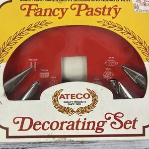 Ateco Fancy Pastry Cake Cookie Decorating Set 6 Icing Tips New in Box USA