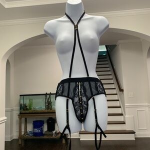 Stunning harness brief with attached leg straps. This is a show stopper!