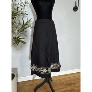 Atelier Black Midi Skirt Womens 6 Wool Blend Embroidered A-Line Bohemian Folk