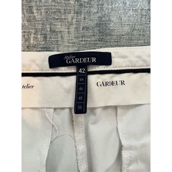 White Dina Slim Fit pants from Atelier Gardeur. Zippered front and back pockets, 2 slip back pockets. Zip fly. Cropped ankle length inseam. Excellent gently used condition.