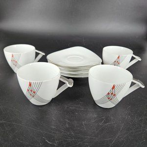 Atelier JM Lasov Delta Pyramid Czech Coffee Tea Mocha Cup Saucer Plate Set of 4