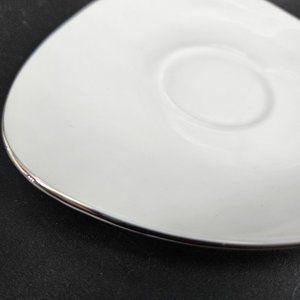 • Atelier JM Lasov Tea Coffee Mocha Cup Mugs and Saucer Plates with embossed geometric lines and design