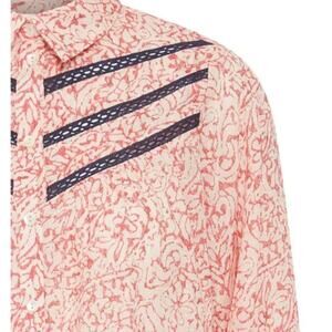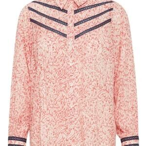 The Atelier Reve Aura Shirt boasts a striking flower paisley print, complemented by delicate lace detailing on the collar and cuff. Expertly crafted for comfort and style, this long sleeve shirt is a must-have for any fashion-forward wardrobe. Elevate your look with this elegant piece.