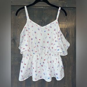 Atelier Rose White Floral Cold Shoulder Romantic Summer Top Small Casual Blouse