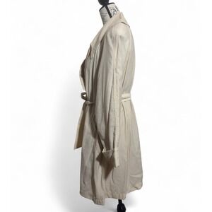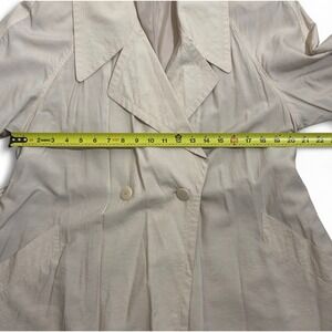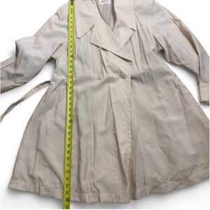 The Atelier Sab jacket is a vintage-inspired, mid-length pea coat in a classic beige color. Made from polyester with a polyester lining, this coat is perfect for casual occasions during the spring season. The size tag is not available but I added measurements regular fit for women who appreciate timeless style and quality craftsmanship.