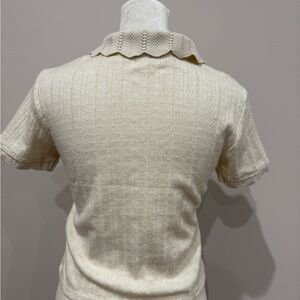 Atelier by Kirious Cream Short Sleeve Collared Top with Buttons Size Small