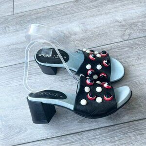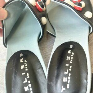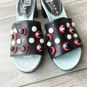 Ateliers Black Leather Studded Heeled Slide Sandal