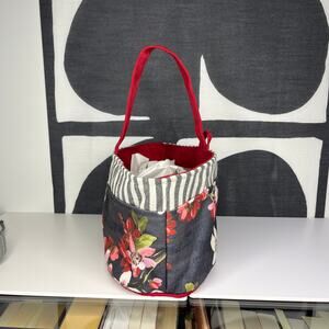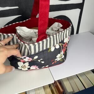 Atenti Knitting Crochet Caddy in Spring Night Floral Stripe Small Tote Organizer