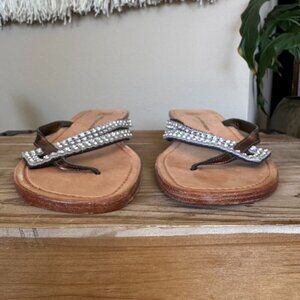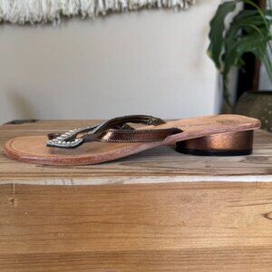 Athena Alexander Metallic Brown Rhinestone Embellished Low Heeled Thing Sandal Size 8