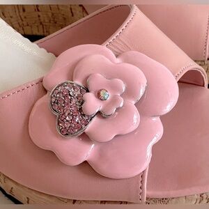 Athena Alexander Pink Flower Wedge Sandals