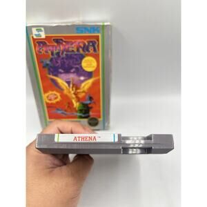 The product is Athena for the Nintendo Entertainment System, released in 1985 by SNK. This platformer and action-adventure game is in NTSC-U/C (US/Canada) region, making it compatible with consoles in this region. It comes with the original box, adding to its value and collectability. As a classic title from the NES era, Athena offers players an exciting gaming experience filled with challenging levels, engaging gameplay, and iconic characters.