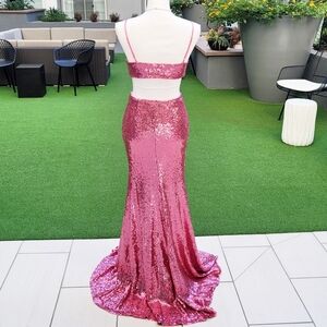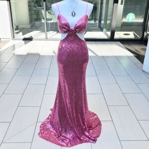 Athena ✦ Sequin Mermaid Formal Gown ✦ Floor Length Pink Twist Front Sz 7 NWT