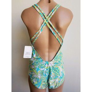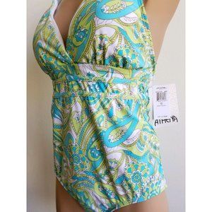 Athena Womens One Piece Swimsuit Padded Bra V-Neck Cross Back Paisley Size 12