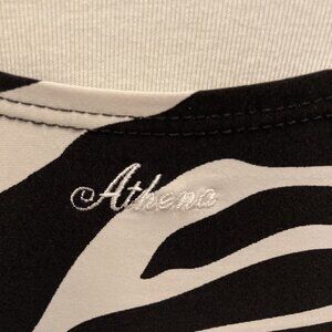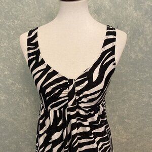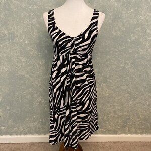 Athena Zebra Print Cover Up Dress Womens Size Medium Black White Sleeveless Swim.