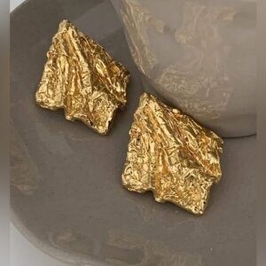 Step out in style with these luxurious gold-tone statement earrings, designed to add a touch of opulence to any ensemble. Crafted with intricate texturing that catches the light beautifully, these earrings are the epitome of elegance and sophistication. Measuring 3.5 cm by 3 cm, they are the perfect size to make a statement without overwhelming your look. Their unique, crinkled design ensures that they will stand out in a crowd, making them a fabulous choice for both daytime glam and evening festivities.