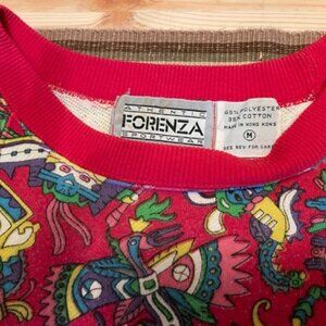Circa 70s Athentic Forenza Sportwear sweatshirt, red with colorful primitive design.