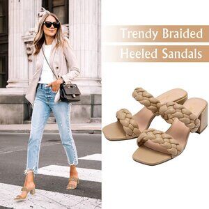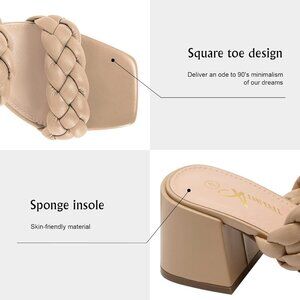 Athlefit Block Heels Nude Leather Women's Open Toe Square Backless Sandals