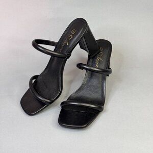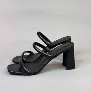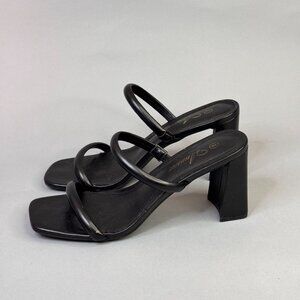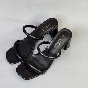Athlefit Chunky Strappy Sandal Square Open Toe Heels – Black, Size 8