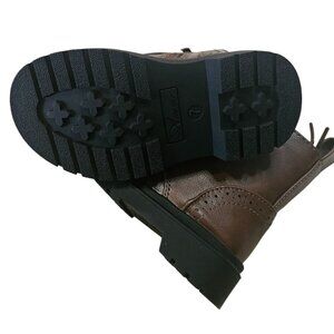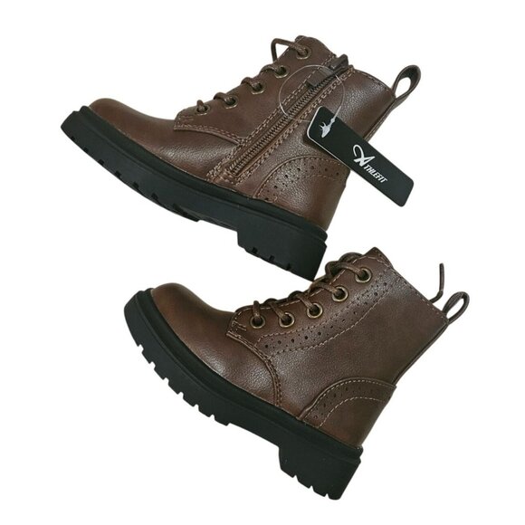 Athlefit Kids Brown Leather Ankle Boots With Side Zipper & Lace-Up Design Size 7