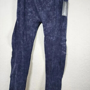 Athleisure Leggings Women's Plus One Tie Die Blue Pleated Legs