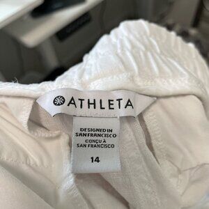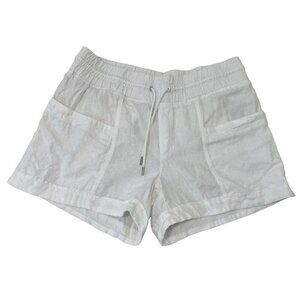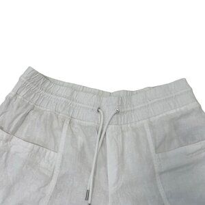 Athleta 100% Linen Pull-On Elastic Waist Shorts Pockets Breathable White size 14
