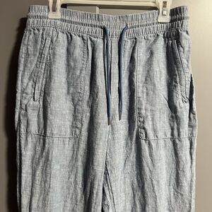 Athleta 100% Linen Retreat Linen Jogger Pants Chambray 8 Lagenlook Elastic Waist