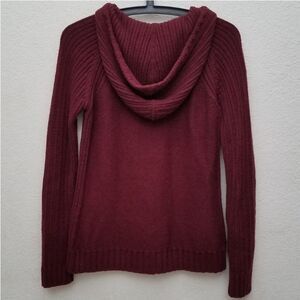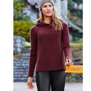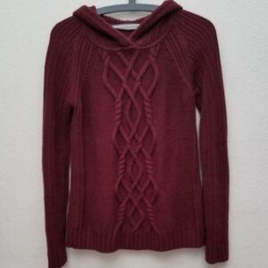Athleta 100% Merino wool oxblood burgundy cable knit, hooded sweater size small