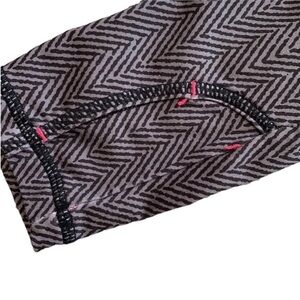 Herringbone pattern in grey/black with side stripe in pink/black/white stripe