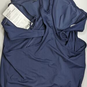 Athleta 34 B C navy Seascape Blousy Tankini swim bathing suit top bra coverup