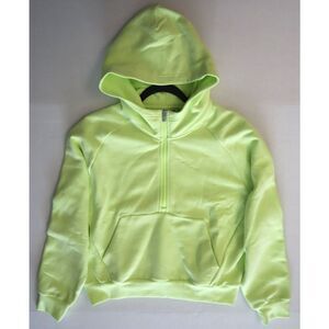 Athleta 473713062 Women Sz L Citron/Yellow Green Easy Fleece 1/2 Zip Hoodie