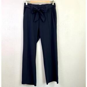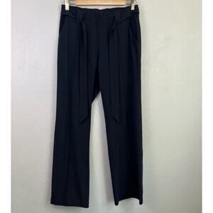 This City Pant from Athleta has a pull-on elastic waist with plenty of stretch. A belt that cinches and ties. Wide, straight leg pant. Silky sleek fabric that's breathable and wicking. A professional, career look that feels like sweatpants!