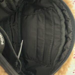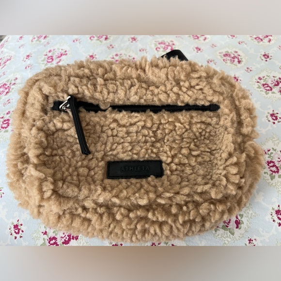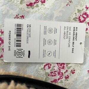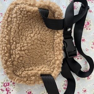 Brand new, with tags. Super cute, super soft shearling-style belt bag in warm camel/tan color. Cozy texture on the outside with a smooth black lined interior and a small mesh pocket inside.