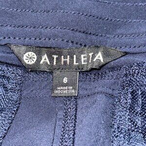 Athleta 8" Navy Shorts Button Zipper Size 8 Summer Lightweight Athleisure. These shorts are made of 86% Polyester 14% Spandex. It measures Waist (lying flat) 16.5", Rise 12", Inseam 8". These shorts are in great, used condition. Ships from a Smoke Free Home. Any questions, please ask. All reasonable offers welcome.