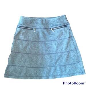 Athleta A-Line Elastic Waist Pull on Grey XXS Mini Skirt with two front functional zippered pockets. Waist 13", Length 16"