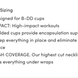 B-DD cups. High-impact workouts. Molded cups. Open-mesh back for ventilation. High coverage. Highest-cut neckline. Adjustable. WICKING. QUICK-DRYING.
