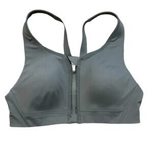 Athleta Advance Zip Front Gray Active Wear Sport Bra Racerback Size 32B